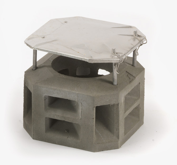Betonkappen worden gebruikt als afwerking bovenop een gemetselde schoorsteen. De betonkappen hebben een openklapbare RVS deksel.